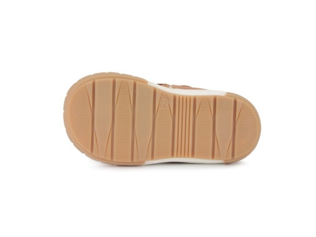 Konstruktionen ger ett tryggt stöd och hjälper till att stabilisera foten, vilket bidrar till en korrekt position redan från de första stegen. Den lätta och flexibla sulan böjer sig naturligt vid trampdynan och följer barnets rörelser, vilket ger ett tryggt och naturligt steg.
