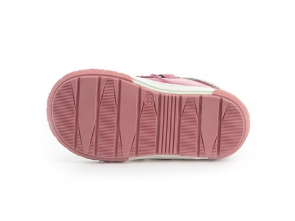 Konstruktionen ger ett tryggt stöd och hjälper till att stabilisera foten, vilket bidrar till en korrekt position redan från de första stegen. Den lätta och flexibla sulan böjer sig naturligt vid trampdynan och följer barnets rörelser, vilket ger ett tryggt och naturligt steg.