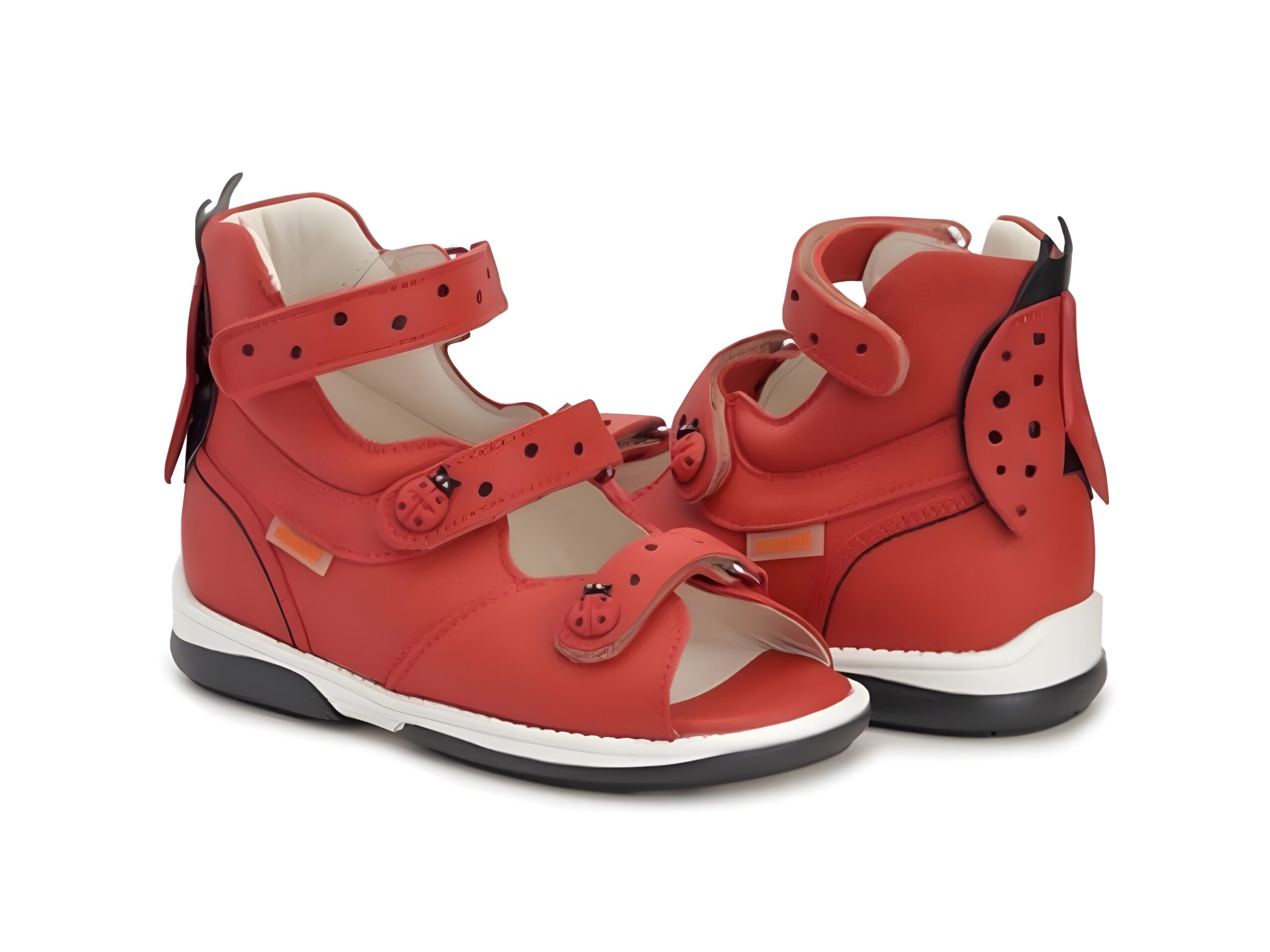 Ladybird är en stabil och funktionell sandal utvecklad för både behandling och förebyggande av fotproblem hos barn. Den öppna designen i kombination med den diagnostiska yttersulan gör det möjligt att följa barnets gångmönster och upptäcka eventuella avvikelser i ett tidigt skede.