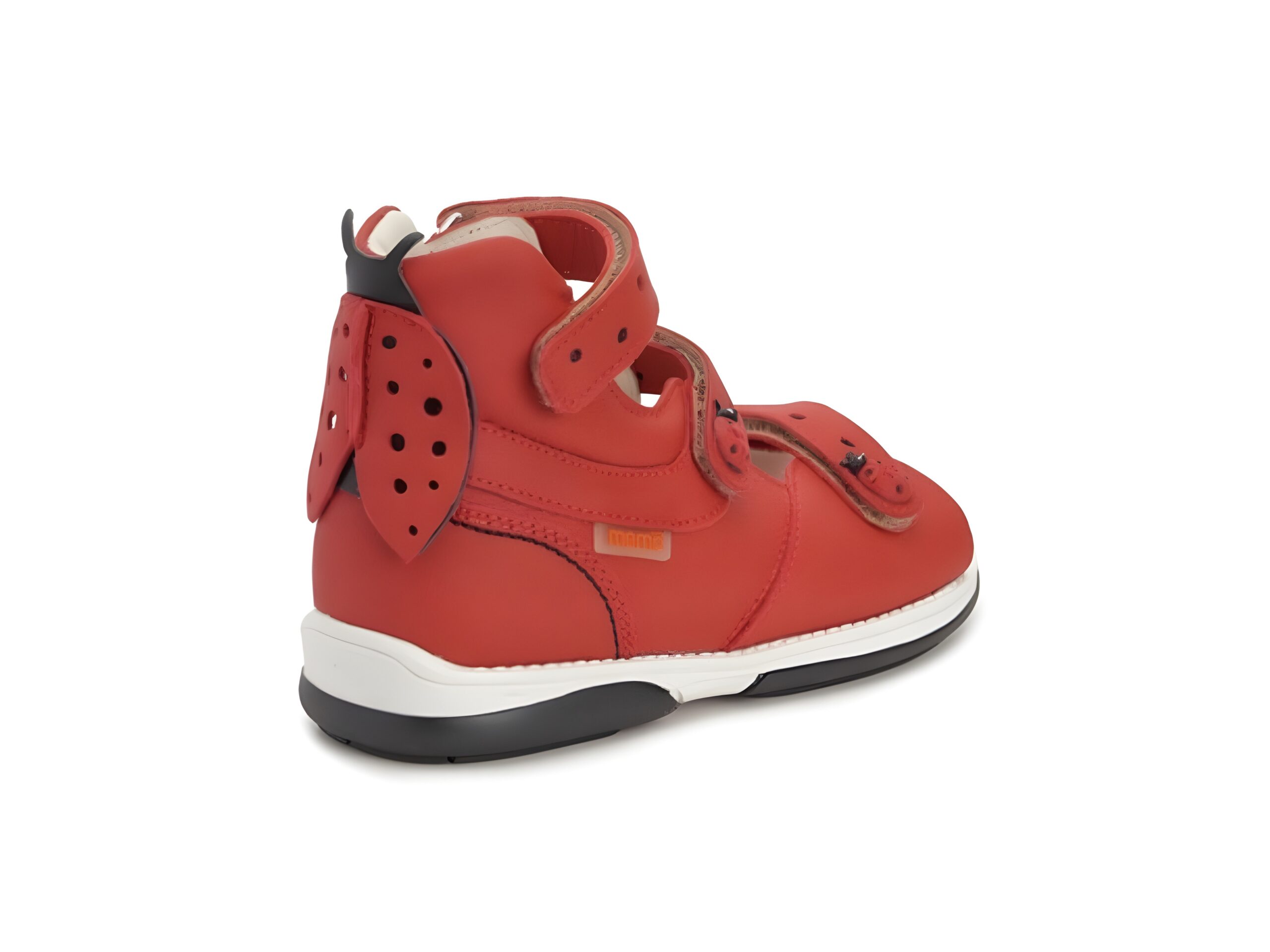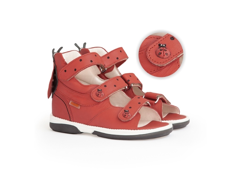Söt sandal i läder med nyckelpigemotiv. Flexibel diagnostisk yttersula med indikatorer, stabil bakkappa, 3 justerbara kardborrband med vändsölja. Ladybird är en del av ortopediska barnskor i Memo-familjen. Läs mer om Memo.