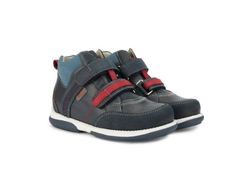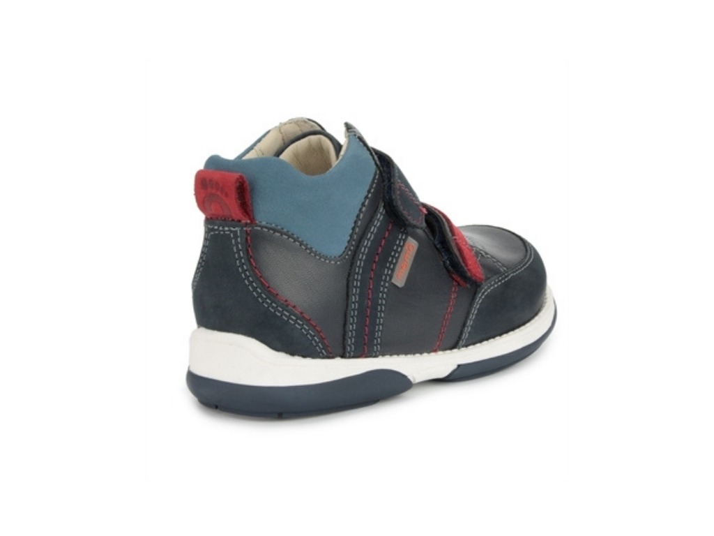 Sportig sko i marinblått läder och röda detaljer. Flexibel diagnostisk yttersula med indikatorer, stabil bakkappa och utrymme för ortopediska inlägg vid behov. Polo Junior är en del av ortopediska barnskor i Memo-familjen. Läs mer om Memo.